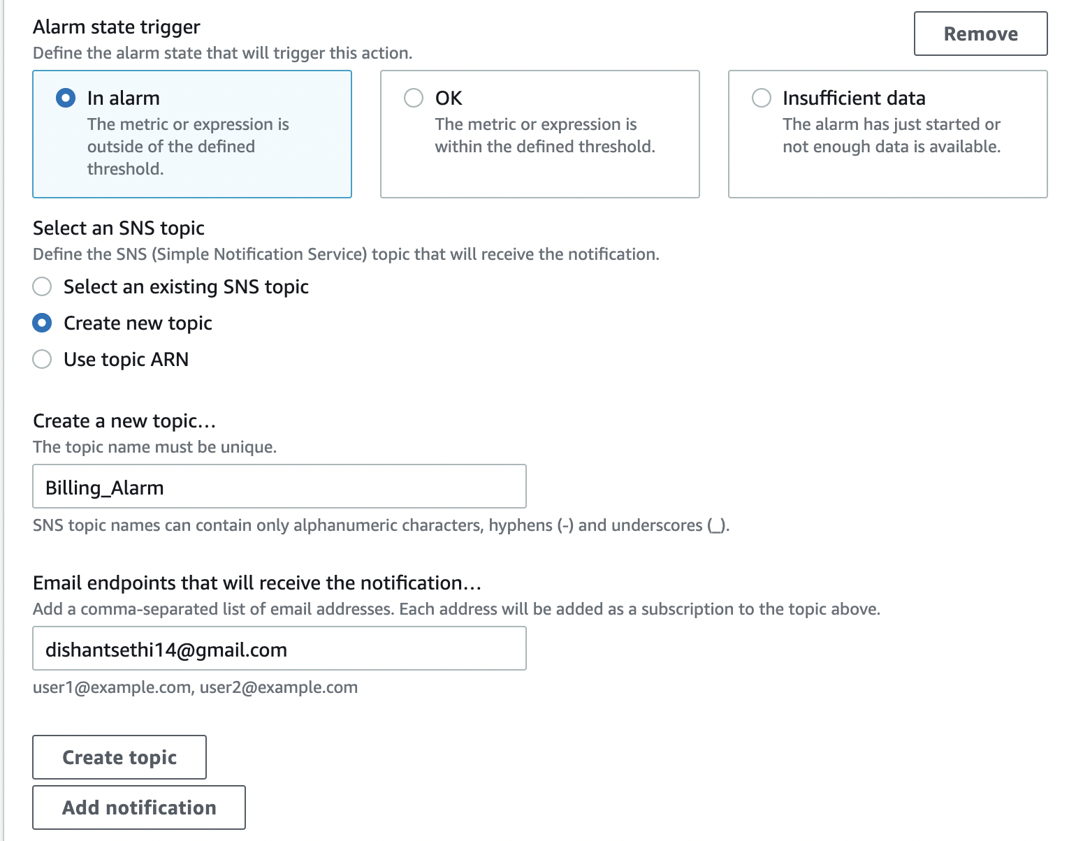 Enable Cloudwatch Alarm and SNS Topic for AWS Billing Alert